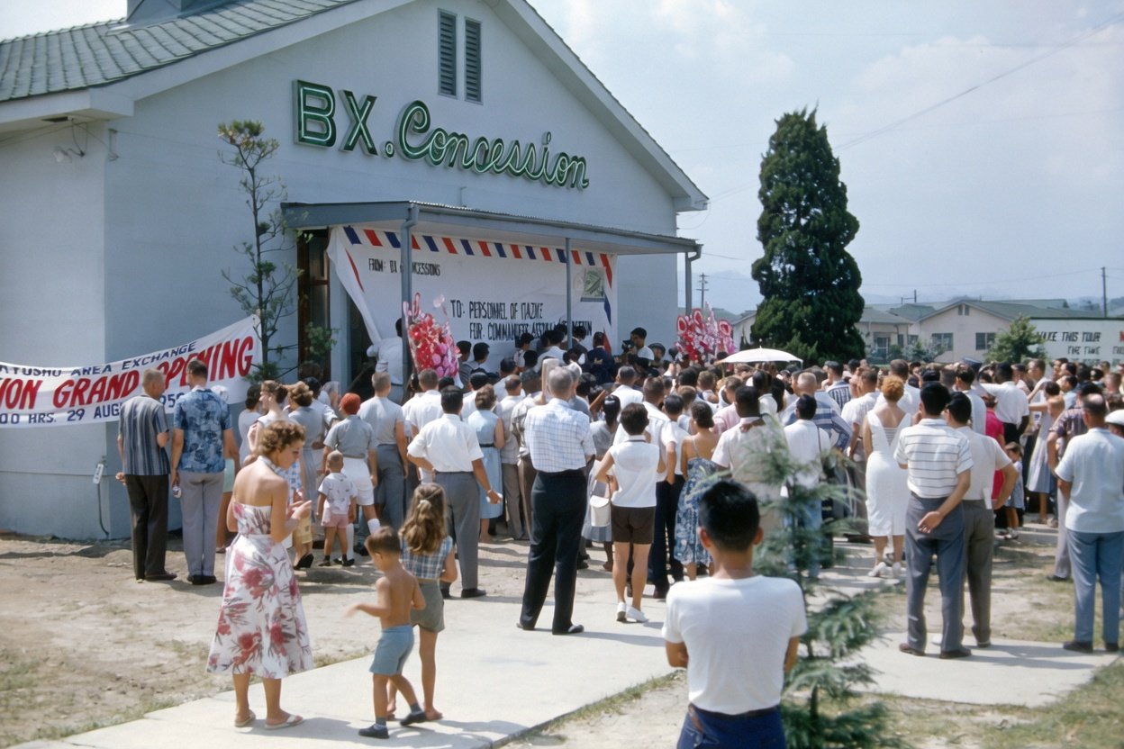 I left Japan in Sept 1959. I was stationed at Showa May, AFB, about 20 miles out of Tokyo the first 18 months. Then was transferred to Itazuke for the next 18 months. I was in the old 24th Helicopter Sq. My wife was in charge of all the Japanese concessions on Brady. We brought back a lot of stuff from all over the Far East. My son was born in Tokyo. My wife loved Japan and its people. She wanted me to extend and take my discharge at Itazuke. After three years I was homesick and ready to come home. — GJ